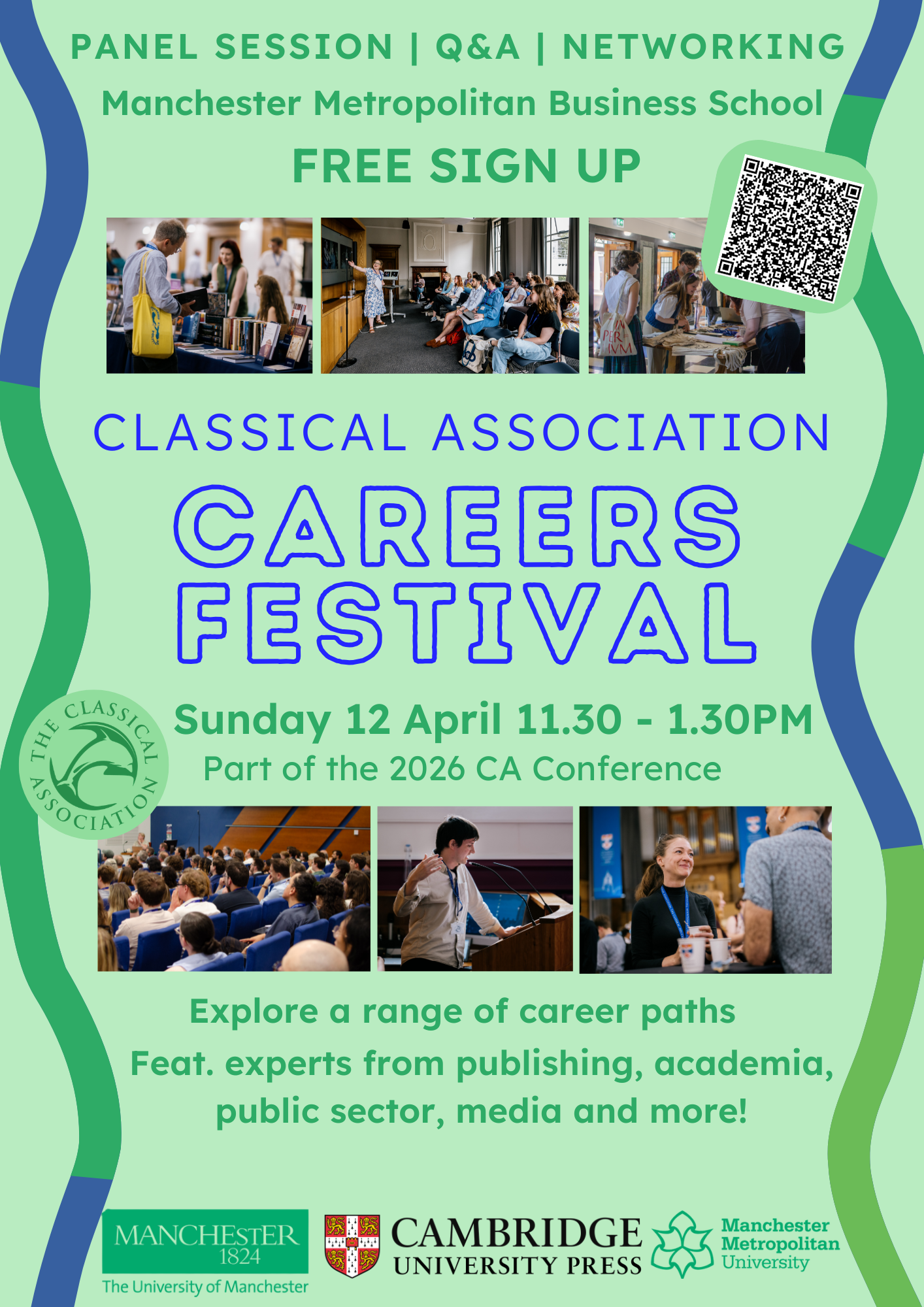 For the first time, we are incorporating a careers festival into the Sunday programme. Free to all, and designed to support students and classics enthusiasts of all ages, enjoy a panel session, Q&A and networking opportunities. Sign Up here.