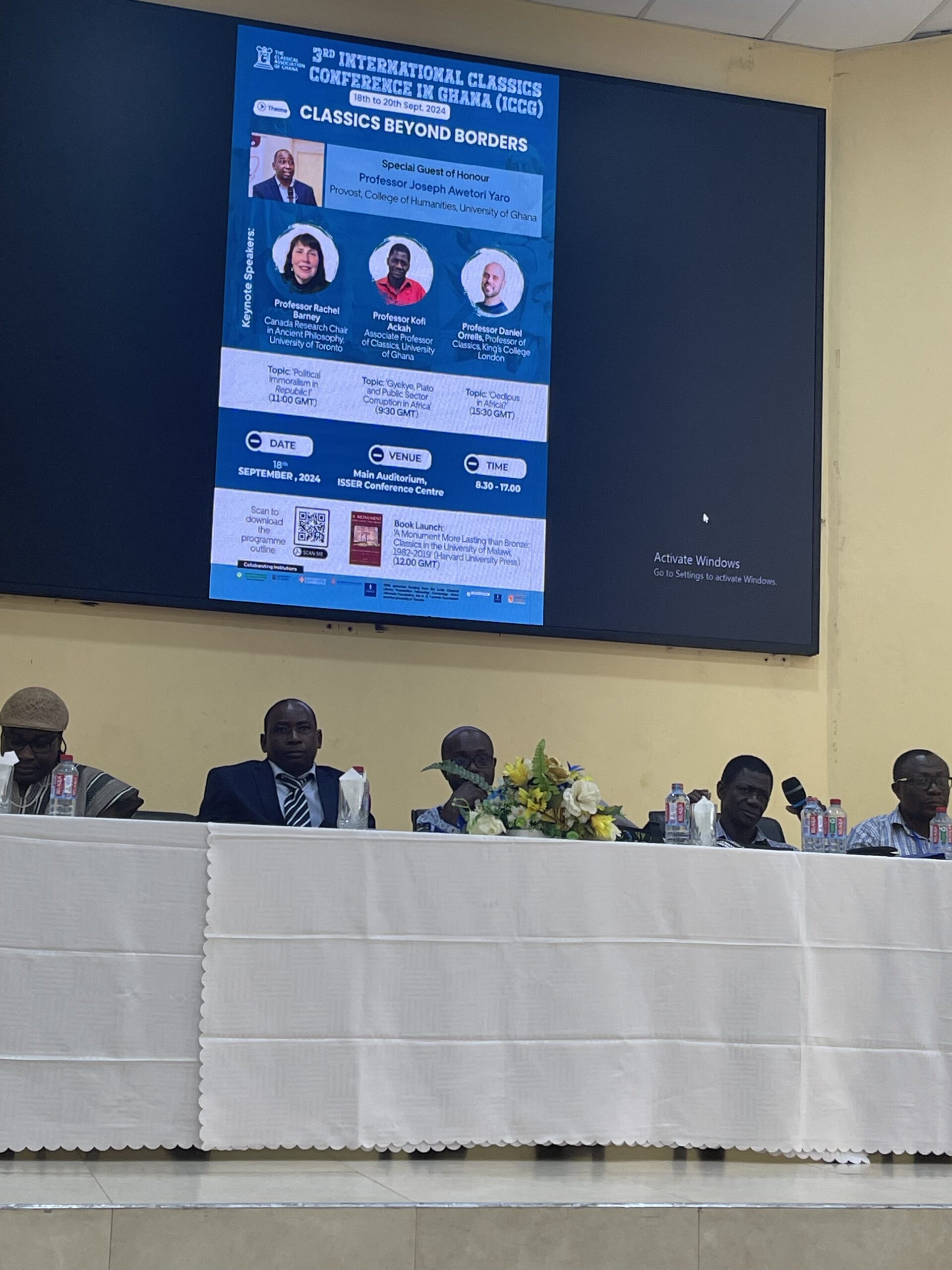This was a two-day event with three keynote speakers (Professor Rachel Barney from the University of Toronto, Professor Kofi Ackah from the University of Ghana, and Professor Dan Orrells from Kings College London), various panels to integrate the 41 papers, and 106 participants. It began with a panel involving high ranking officials from the University of Ghana: the Provost of the College of Humanities, Professor Joseph Awetori Yaro; the Dean of the School of Arts, Professor Wazi Apoh; and the Head of Department of Philosophy and Classics, Dr Richmond Kwesi. This showed the level of support at all levels of the university for the work being done by the Classical Association of Ghana to foster a vibrant and international Classics community.