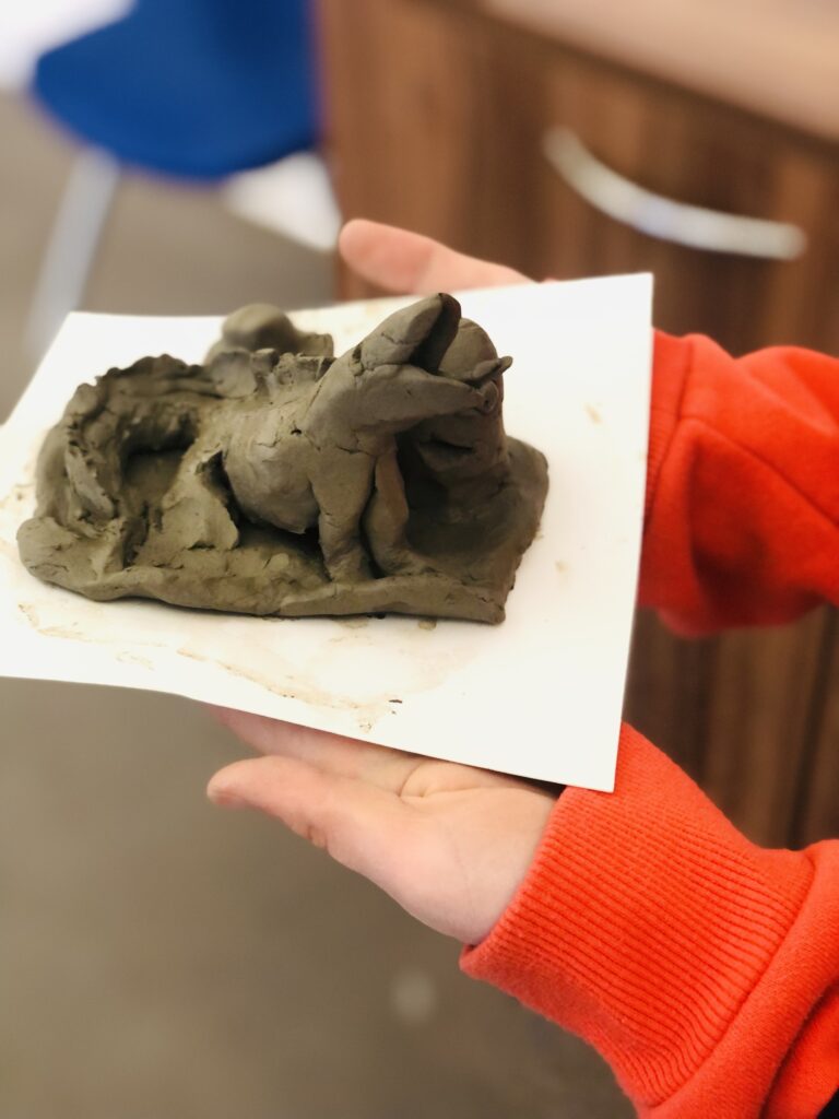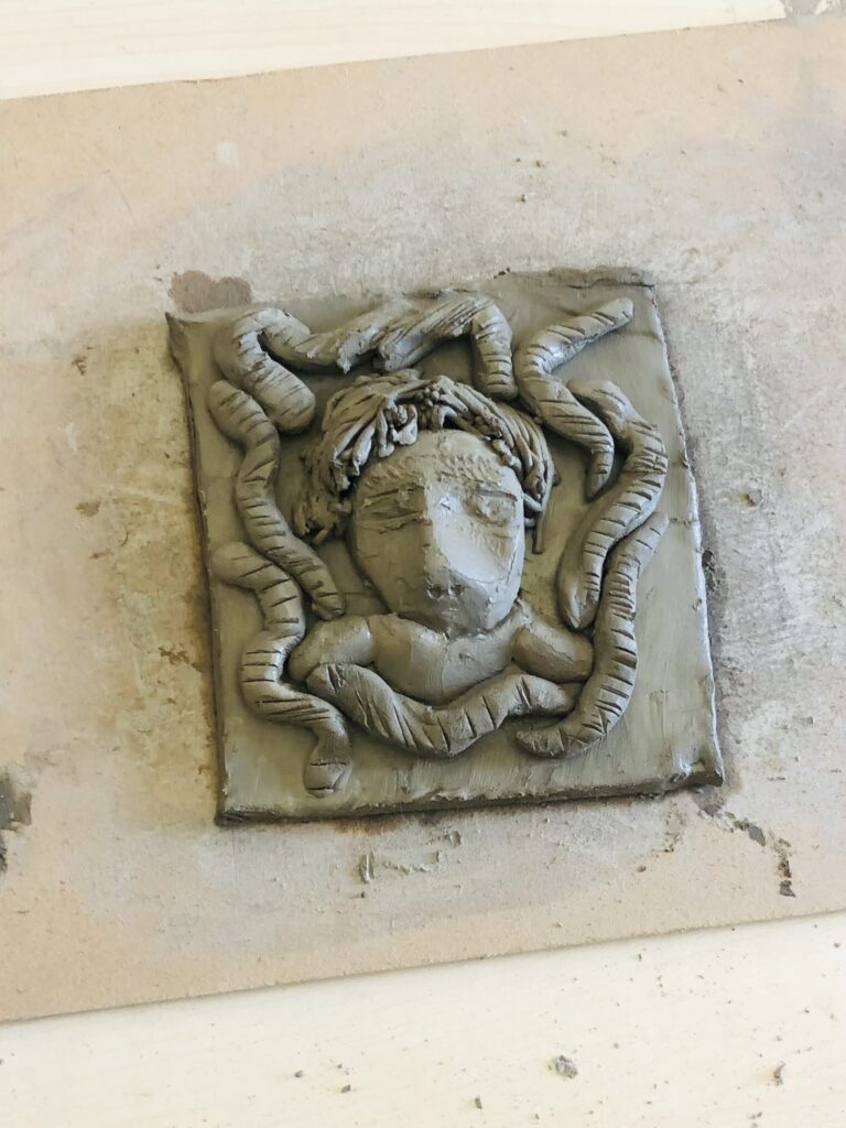 The children who attended were fascinated by the stories behind some of the Roman artefacts and particularly enjoyed the more gory stories! Despite our collection being rather small in terms of opportunities to link it to myths and legends we managed to enthuse the group with the tall tales that were linked to the objects in the cases. They were particularly inspired by the remains of Medusa’s hair on one of our tombstones and enjoyed the opportunity to explore some of these myths and legends to make a clay tile.